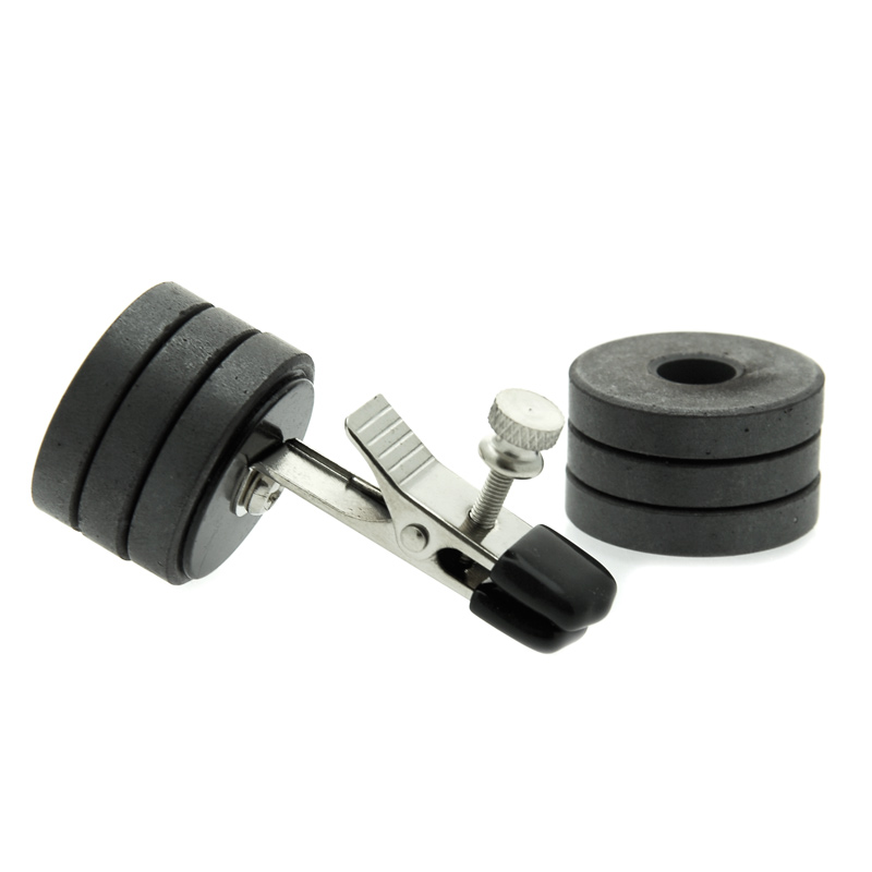 When placed just so, this single alligator style clamp is designed to add graduated pressure to the sensual areas of your plaything. You decide if they deserve light pressure or an intense pinch. Onus comes to you with a rubber tipped clamp with a twist up adjuster, and 6 removable 1 oz. magnet weights. Your plaything will enjoy the customizable weight of the magnets alongside the graduated pressure.