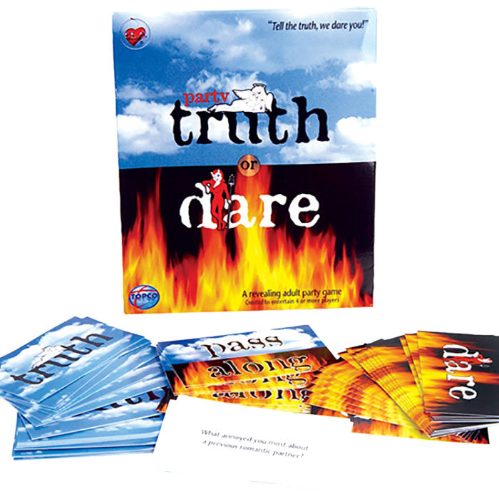 Imagine finding out your friends darkest secrets or daring them to do something you've always wanted to watch them do. To play simply roll the enclosed dice, even number you pick a truth card odd number you pick a dare card. It's exciting as it is fun and is only limited by your inhibitions. Set contains 1 deck of Truth cards, 12 Pass cards, instructions and one die.
