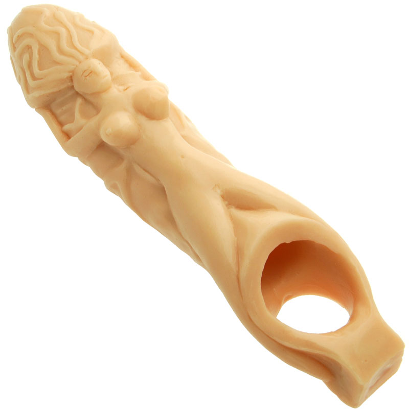 Penis extender that will give you extra lenght and girth. On the outside of the sleeve there is a female body which will provide extra stimulation to your partner.