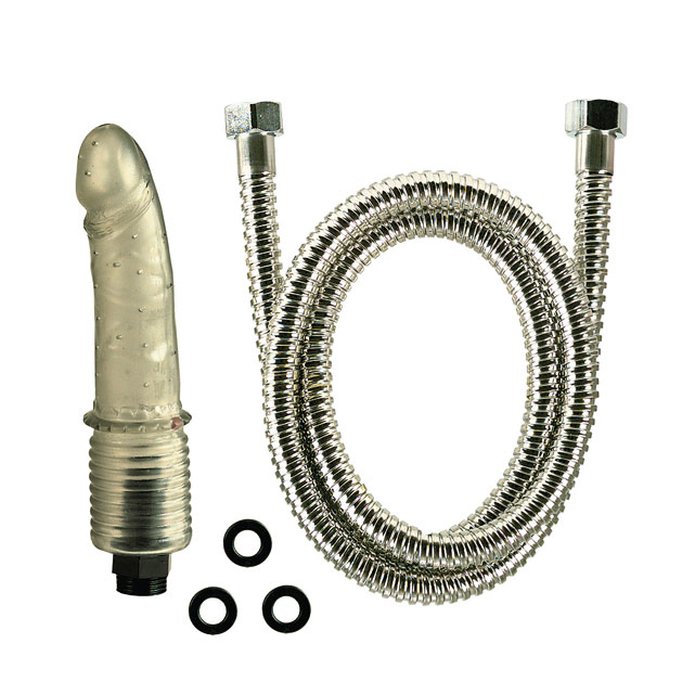 Removable perforated soft Jelly dong shaped nozzle with a non tarnishing, nickel free hose. Attaches easily to any shower PVC, dong Chromed Steel, hose.