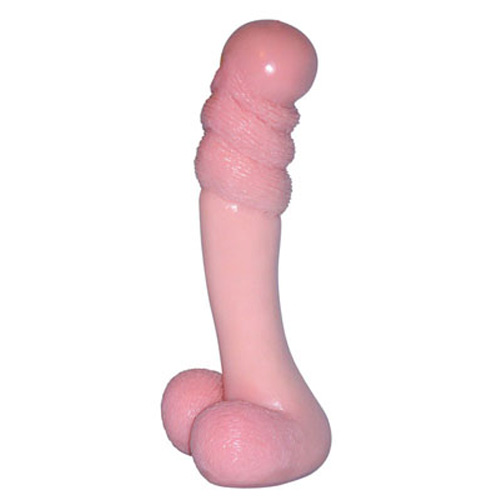 The Frenchy Super Cock is an unusual dildo with a nice big head and several interesting textured bumps, which taper down to a slim base. This toy is 8.5" long (7" insertable). It is 1.85" thick around the head (6" around) and tapers down to 1.25" thick at the base (4.25" around).